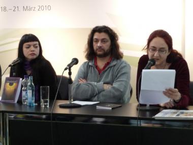 Lyriklesung auf der Leipziger Buchmesse 2010 - mit der Herausgeberin und Chefredakteurin von SlovoKult Elizabeta Lindner-Kostadinovska und dem Verleger und Lyriker Igor Isakovski († 2014)
